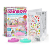 Incluye3 cúpulas de nieve de plástico, 3 arcoíris de película transparente, 1 hoja de pegatis, 1 gotero, 1 sobre de purpuri biodegradable, 3 tapones de goma e instrucciones detalladas. Requerido, pero no incluido en este kit: un palillo de dientes.