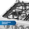 Más InformaciónCuenta con 4 quemadores sellados (1 quemador grande, 2 quemadores medianos y 1 quemador pequeño), frente de color gris, tablero de acero inoxidable, tapa de vidrio templado, parrillas enlozadas, tapillas enlozadas, encendido manual y sistema termocontrol.
