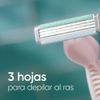 La máquina de afeitar desechable Gillette Venus Suave Sensitive cuenta con una banda lubricante con tecnología Skin Elixir para facilitar el desplazamiento y ayudarte a conseguir una depilación suave con menos irritación* (vs. Prestobarba2), ideal para piel sensible como la tuya. Su cabeza es flexible para un buen deslizamiento que seguirá tus curvas, además, sus tres hojas te brindarán una depilada al ras para obtener suavidad por más tiempo*. Venus Suave Sensitive está dermatológicamente testeado para piel sensible. Para mejorar la experiencia, utiliza el Gel de afeitar Gillette Satin Care.
